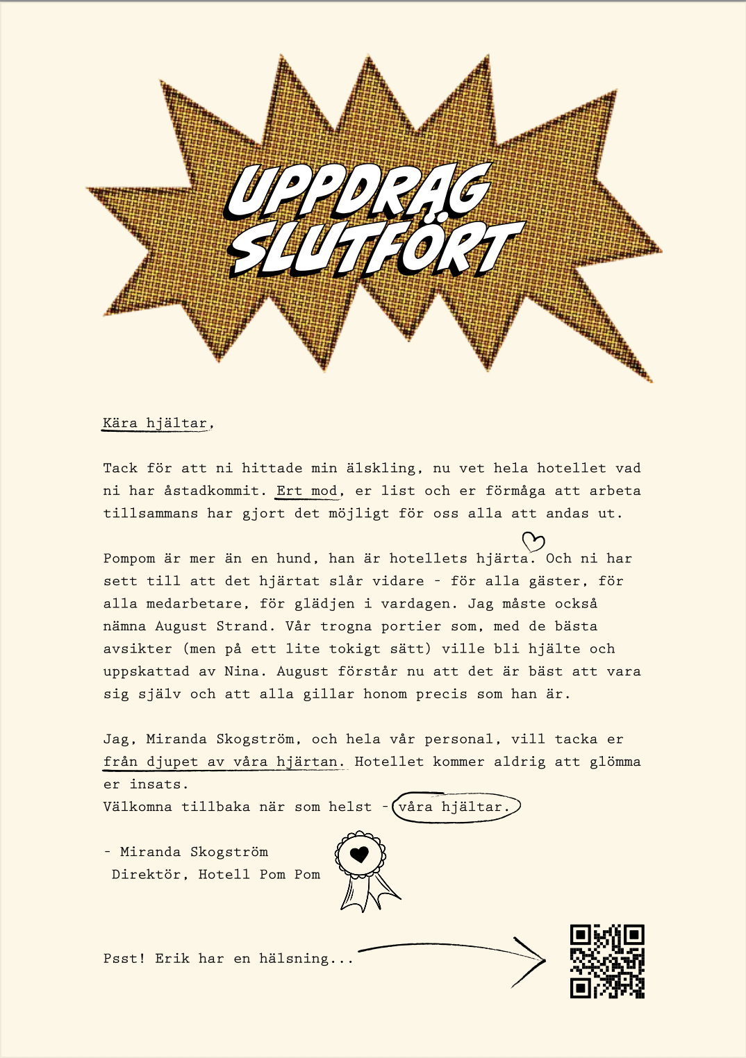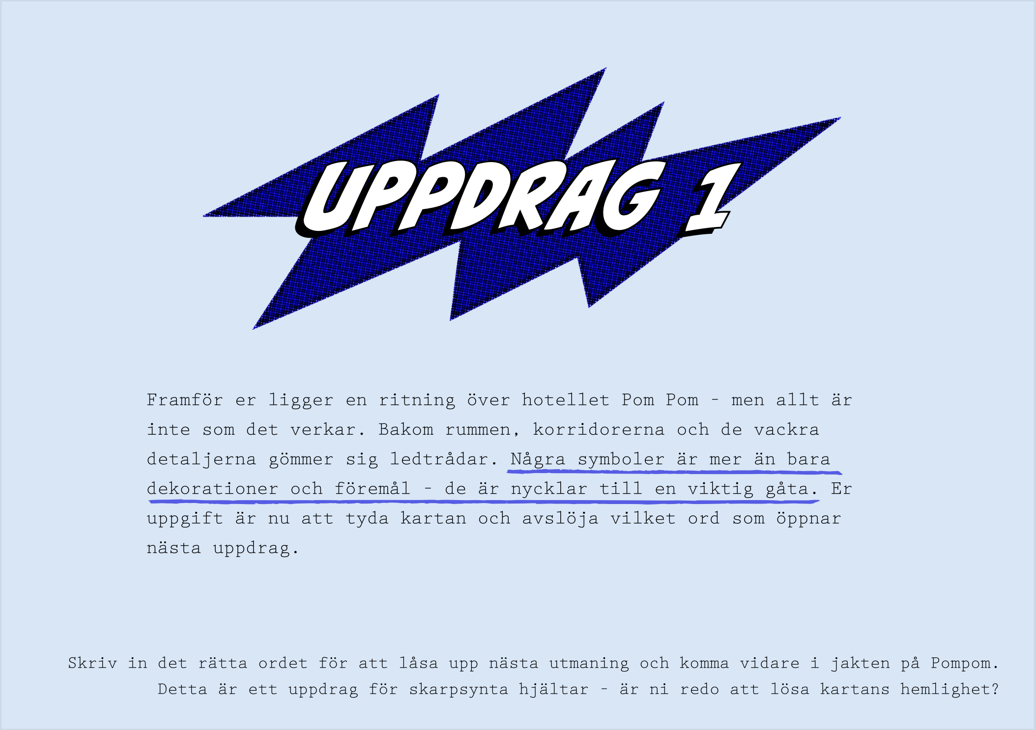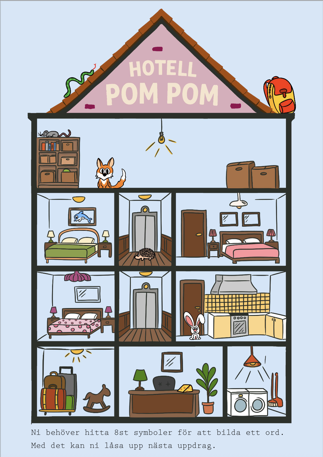 2. Lös uppdragen i rätt ordning. Varje uppdrag leder er vidare i jakten på Pom Pom. När ni löst en del, öppnar ni nästa kuvert.