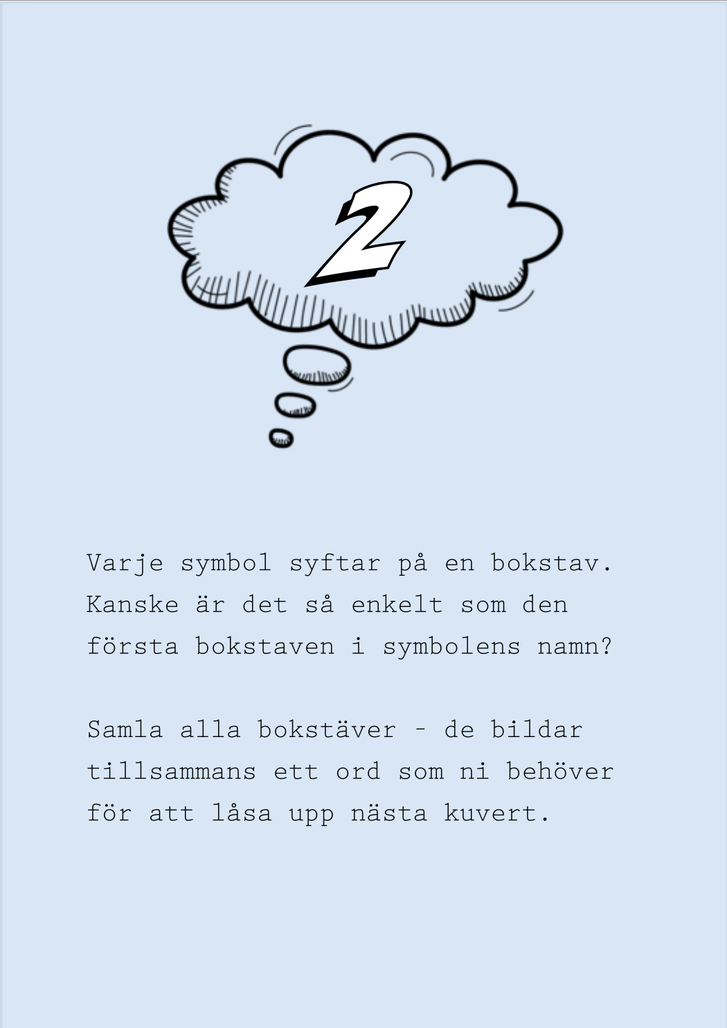 4. Bryt inte förseglade kuvert i förväg. De är låsta med lösenord ni själva listar ut. Öppna dem först när ni är redo.